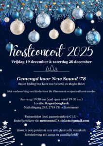 Wij zijn volop aan de gang met de voorbereidingen voor ons Kerstconcert, dat gehouden zal worden in de Regenboogkerk in Zoetermeer op 19 en 20 december 2025.